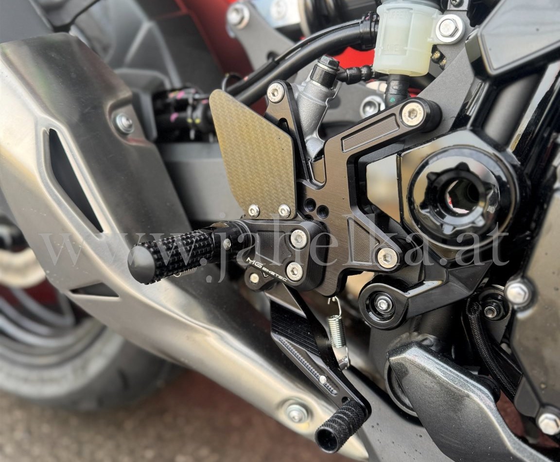 | MG Biketec Edition Clubsport Bremshebel klappbar kurz - schwarz Clubsport Kupplungshebel klappbar kurz - schwarz Kennzeichenträger - Kawasaki Z900 2x Lenkerenden Spiegel Typ 4 schwarz EG/EEC Spiegelschraube Set M10 - schwarz Sport Fußrastenanlage - Kawasaki Z900 2025 - schwarz - Street Ständeraufnahme M8 schwarz Ölverschlussschraube - schwarz Bremsfl.-Behälterdeckel hinten - schwarz Bremsflüssigkeitsbehälterdeckel - schwarz Preis Zubehör (Stand 16.12.2025): ca. € 1100,- |